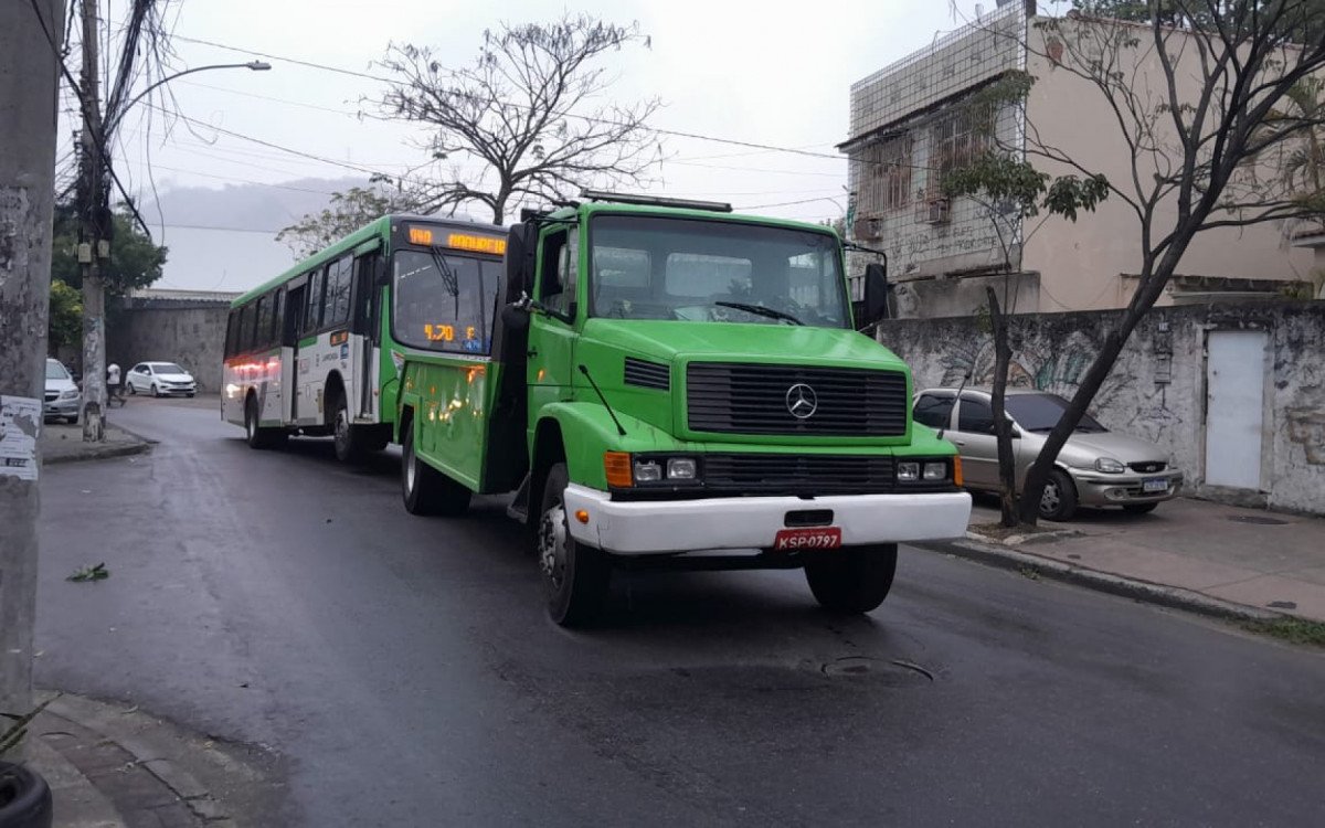 Ao menos 12 ônibus municipais e três intermunicipais foram usados como barricadas durante uma operação da Polícia Militar entre as comunidades da Congonha e do Cajueiro, localizadas nos bairros de Madureira, Rocha Miranda e Turiaçu, todos na Zona Norte, nesta quarta-feira (24). Três homens foram presos.